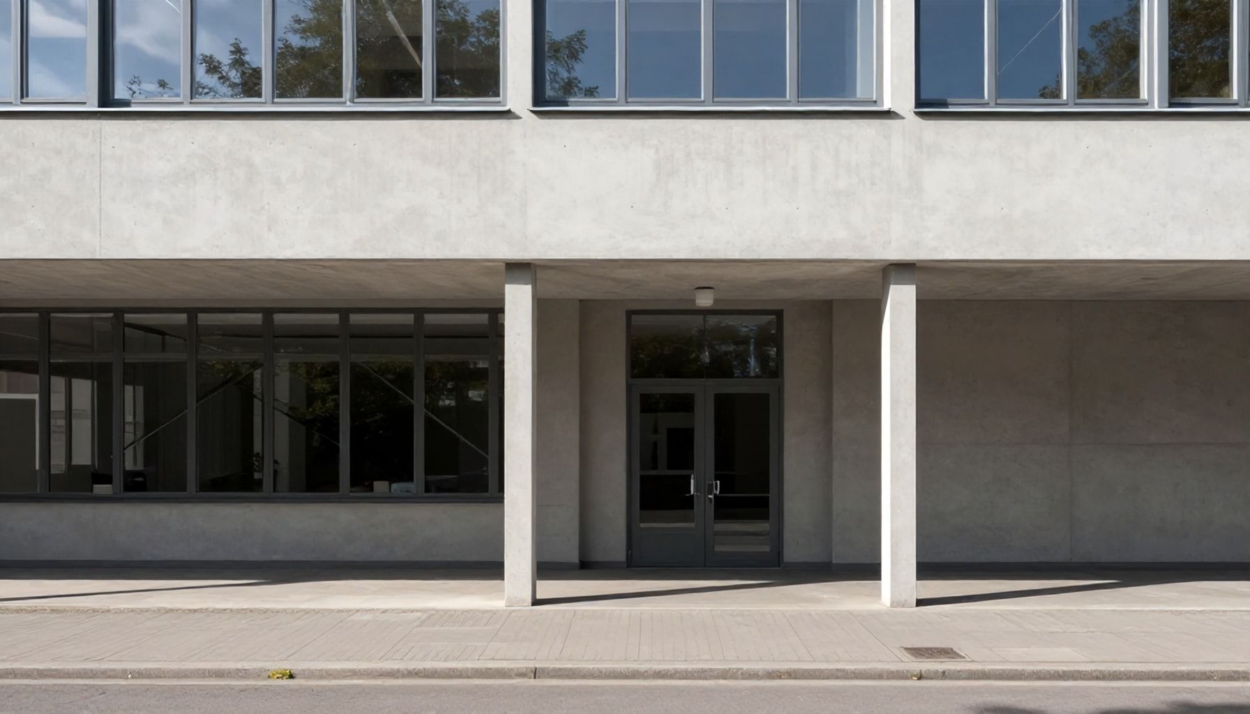 💡 Tunnistusvinkki: Katso ikkunoiden yläpuolisia betonisia katoskoristeita – ne ovat tyypillisiä bauhaus-vaikutteiselle arkkitehtuurille.
